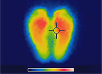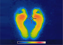 在地面材料上站立5分鐘、離開地面材料瞬間的溫度測定